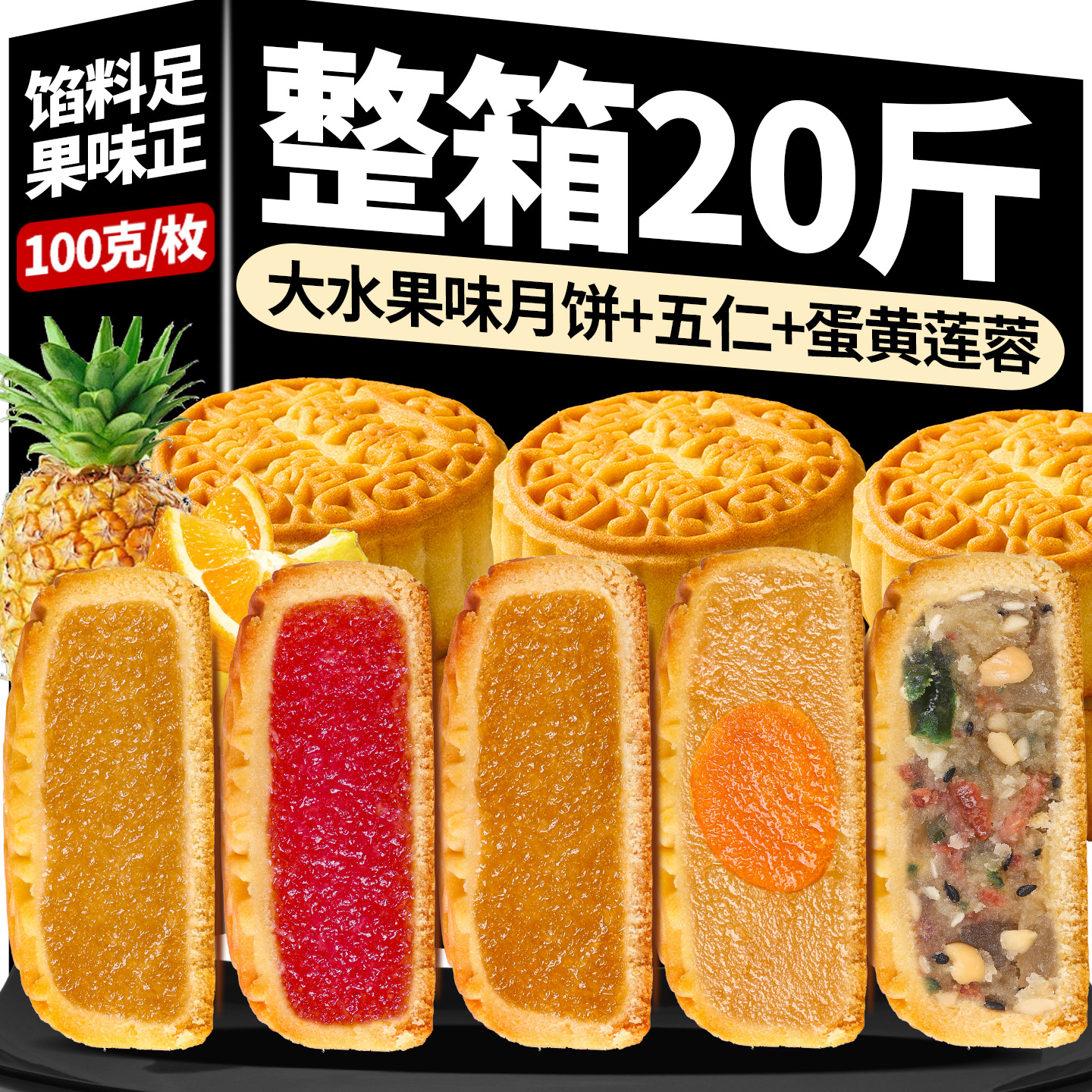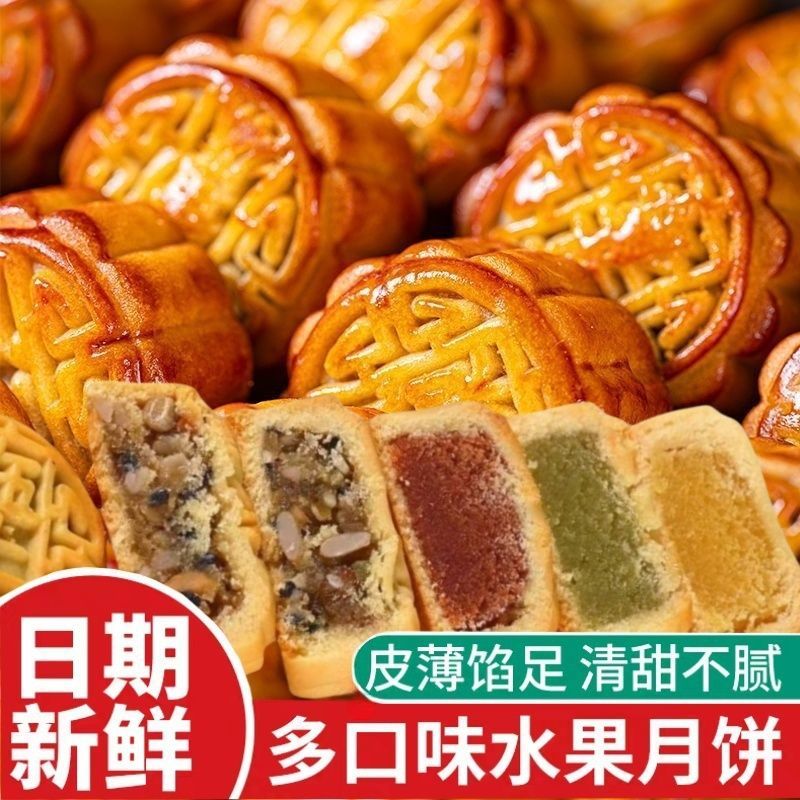 广式水果月饼散装多口味小月饼老式五仁豆沙蛋黄莲蓉月饼批发整箱