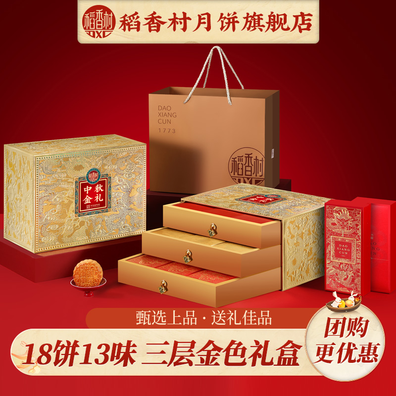 稻香村月饼礼盒三层中秋月饼广式苏式蛋黄莲蓉五仁中秋礼品