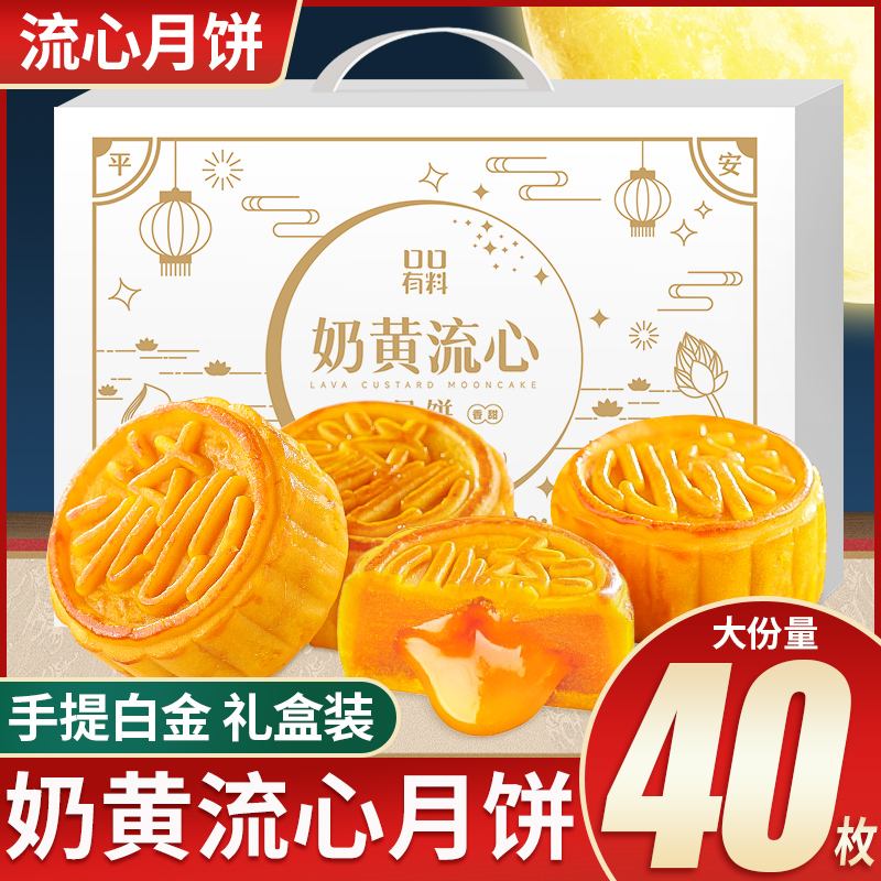 奶黄流心月饼礼盒装团购送礼佳品中秋广式月饼糕点心零食小吃批发