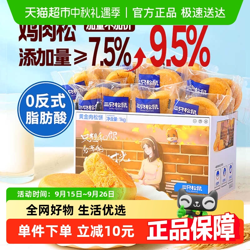 三只松鼠肉松饼1000g中式糕点心早餐面包美食休闲小零食