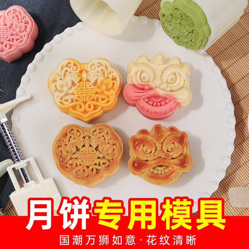 醒狮月饼模具如意中式国风2025新款75克50g糕点花生柿子磨具按压1