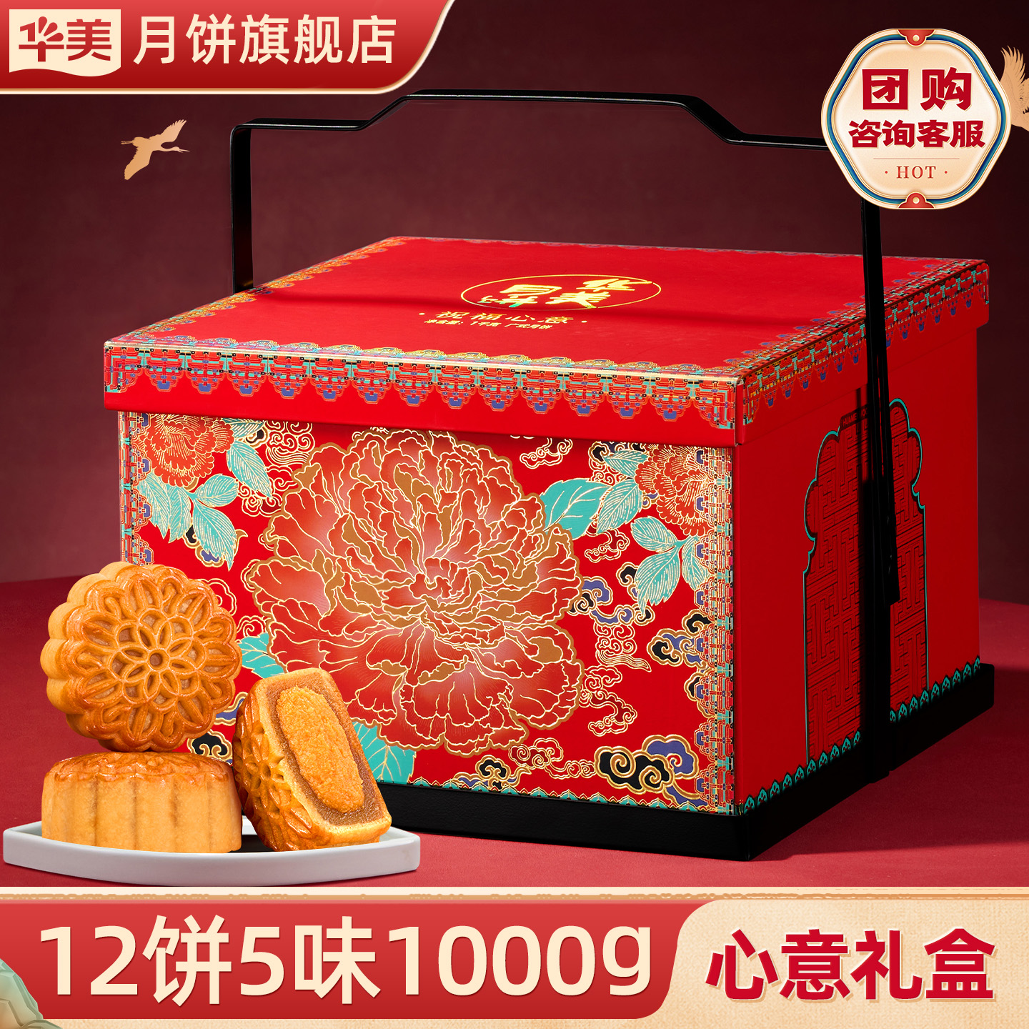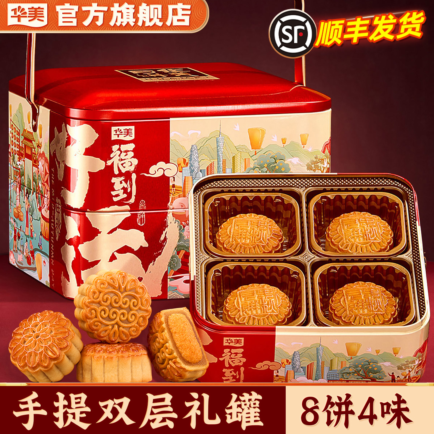 华美繁花七星伴月880g双黄白广式月饼中秋节日送礼品伴手礼团购