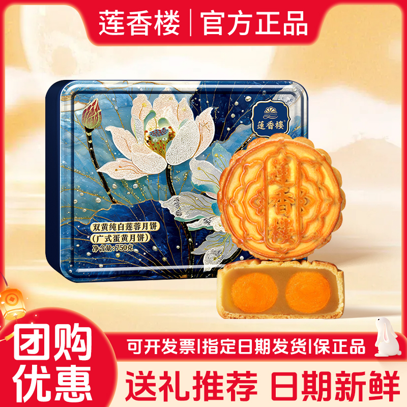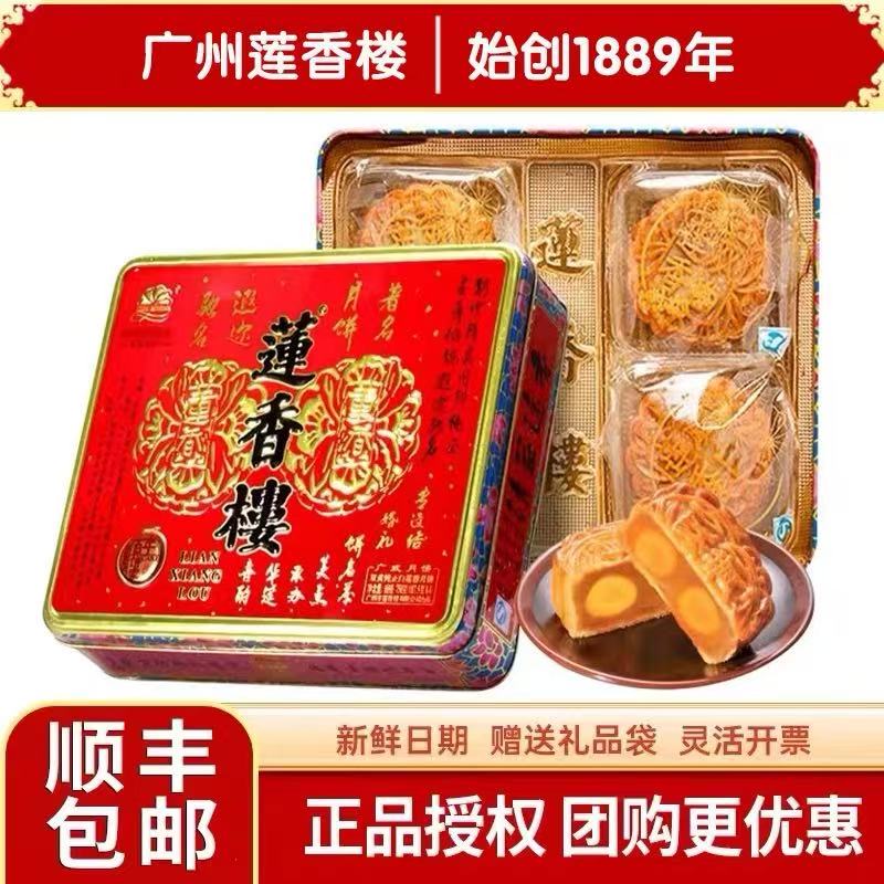 广州莲香楼双黄纯白莲蓉月饼伍仁蛋黄广式月饼礼盒中秋节送礼团购