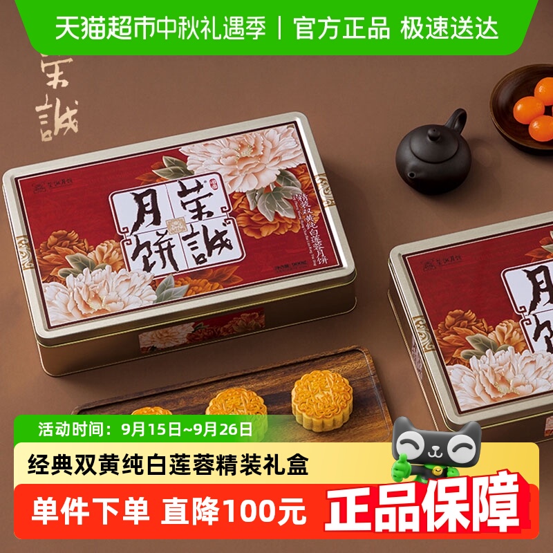 花好月圆蛋黄月饼双黄纯白莲蓉广州传统酒家送礼盒装旗舰店月饼大