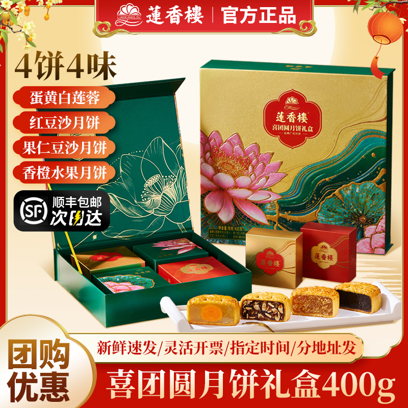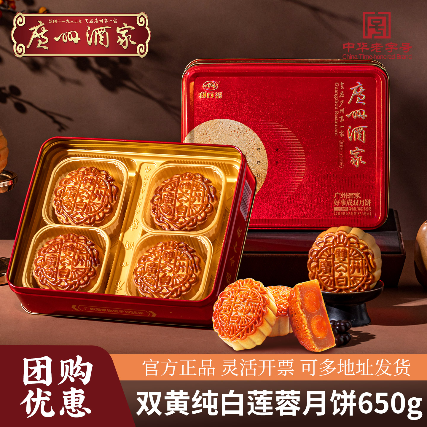 广州官方传统酒家月饼蛋黄莲蓉五仁双黄豆沙礼盒装高档广式送礼
