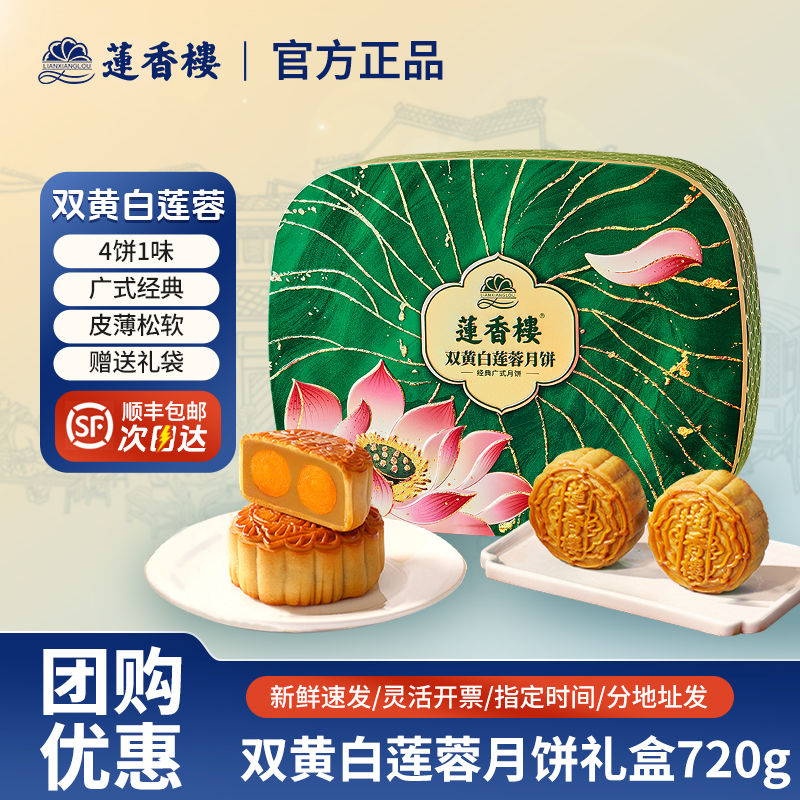 广州正宗广式低糖双黄白莲蓉月饼传统咸蛋黄白莲蓉酒家中秋礼盒装