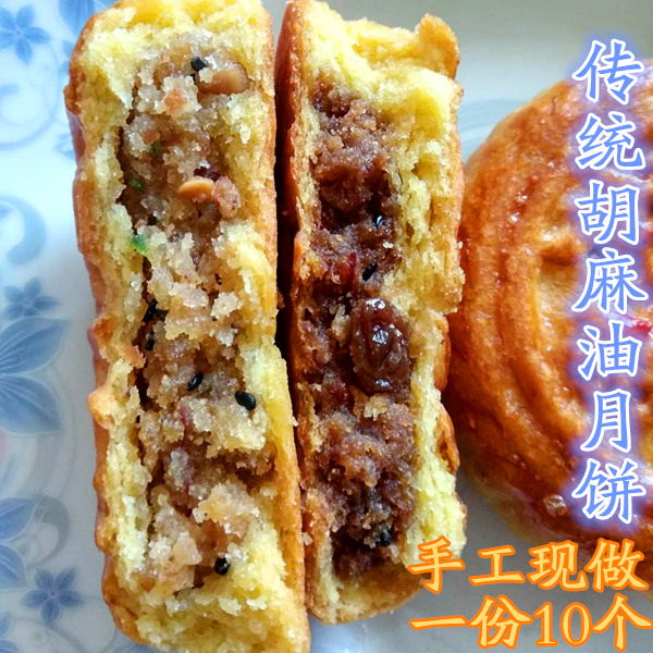张家口坝上特产纯胡麻油月饼纯手工制作白糖红糖五仁馅麻油月饼