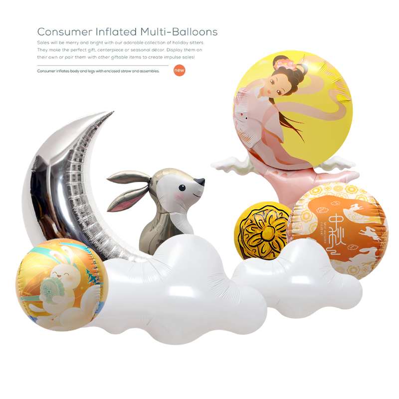 中秋节商铺橱窗装饰道具立体汽球婵娥月饼造型卡通兔子铝膜气球柱