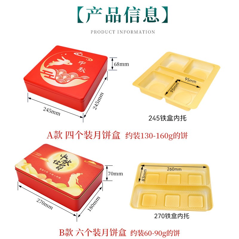 厂家现货a中秋节月饼铁盒4个装6个装礼盒套装蛋黄酥流心月饼铁盒