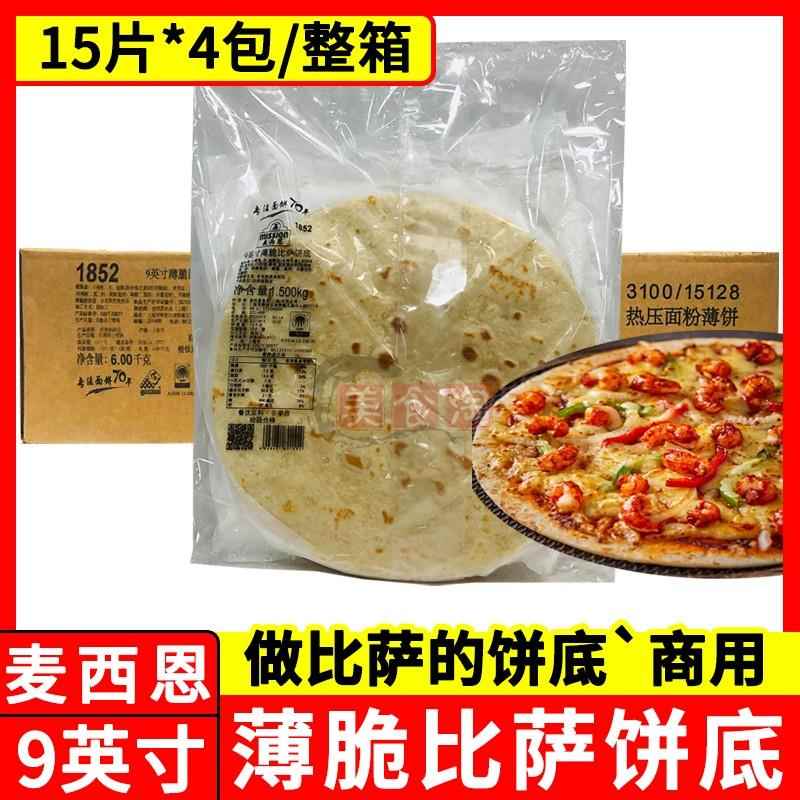麦西恩9寸薄脆比萨饼底15片*4包商用烘焙pizza饼底胚薄披萨面饼皮