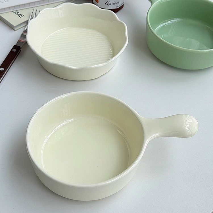 安木良品 大厂订单 韩国ins清新奶油绿陶瓷早餐点心沙拉碗手柄碗