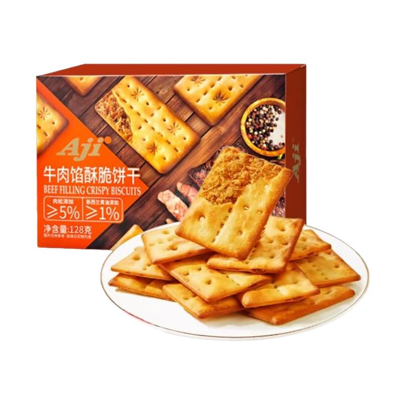 Aji牛肉馅酥脆饼干咸味肉松夹心薄脆饼休闲办公室解馋早餐零食品