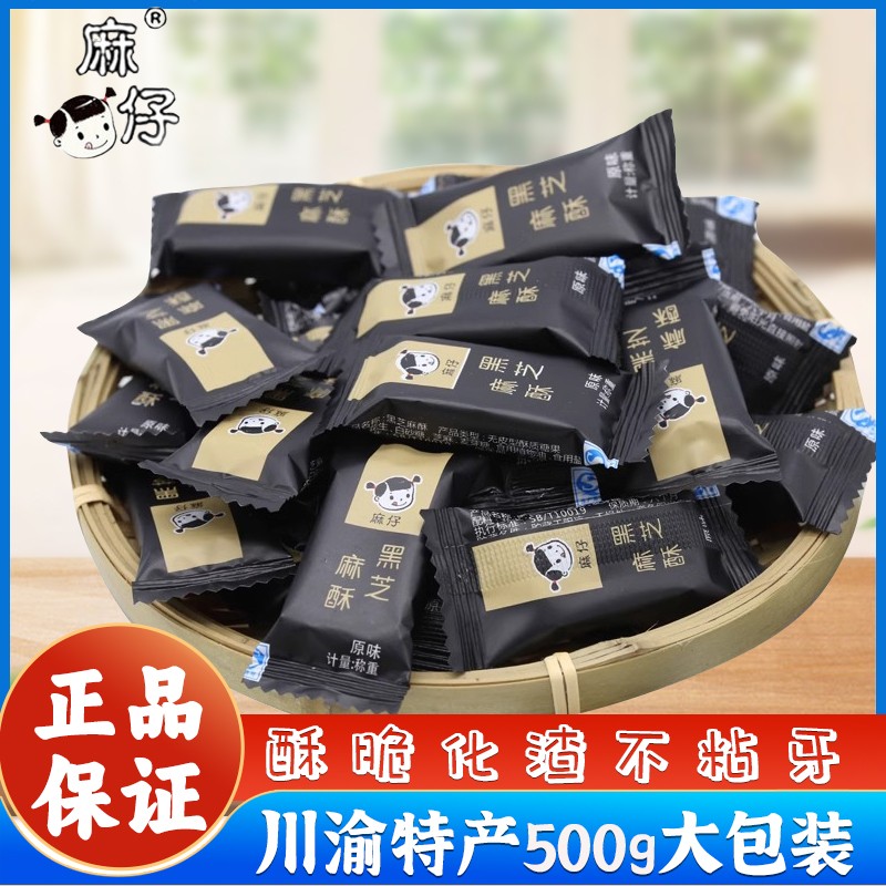 麻仔黑芝麻酥糖原味500g四川特产花生芝麻酥糖果糕点美零食喜庆装