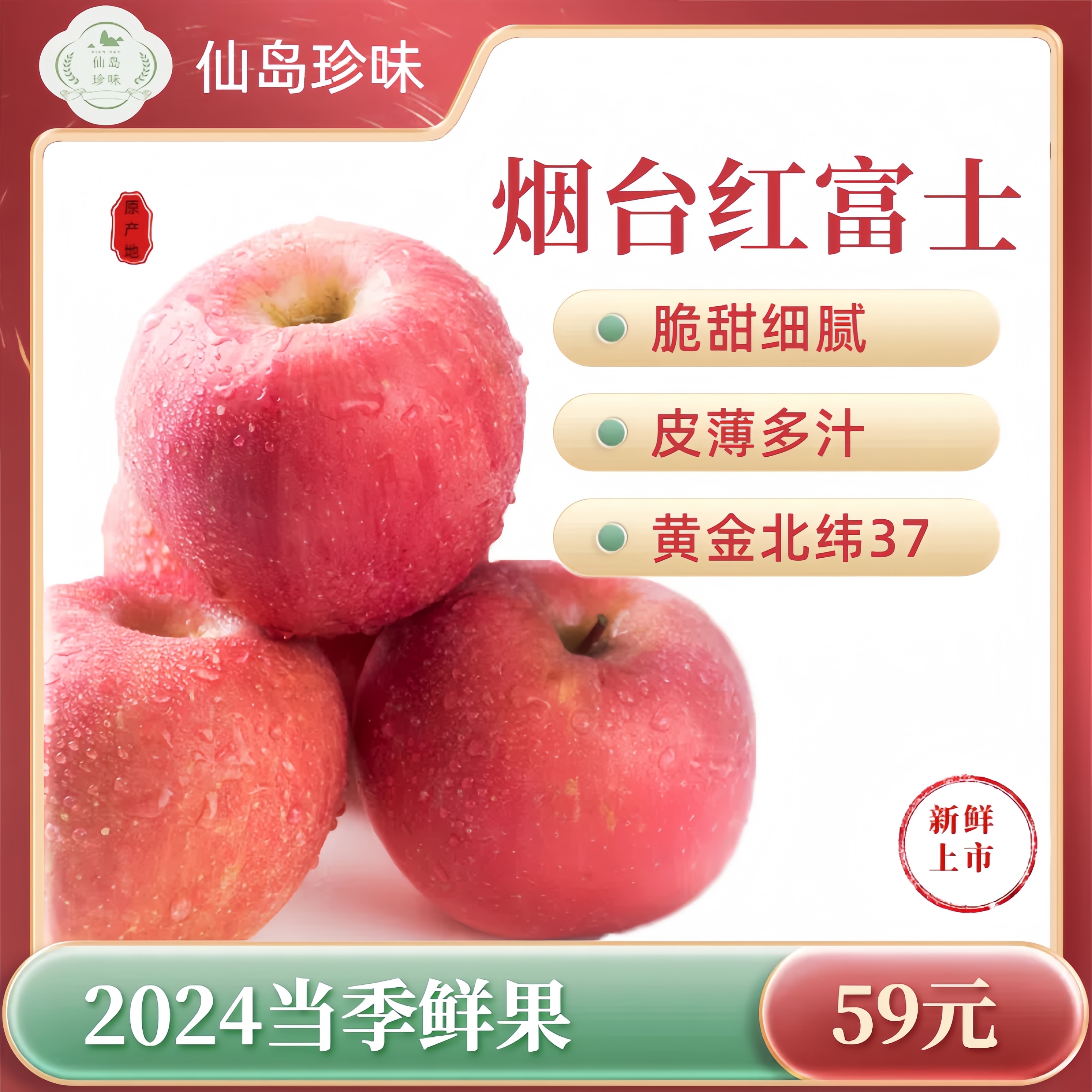 正宗烟台苹果红富士脆甜多汁皮薄糖心应季新鲜水果原产地现摘现发