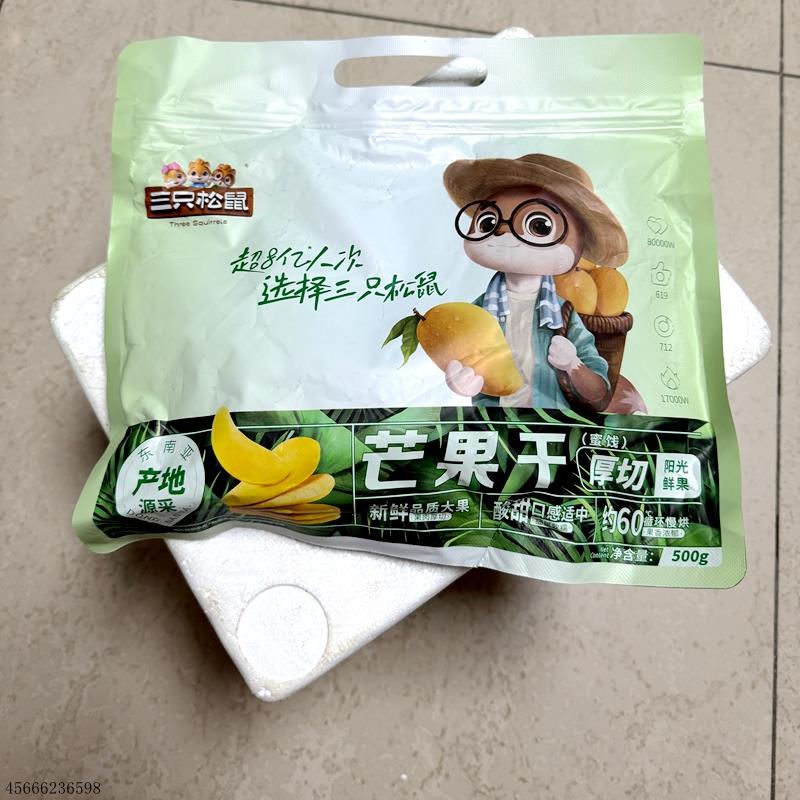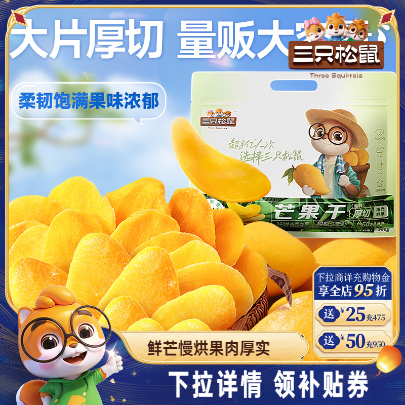 【三只松鼠_芒果干500g】水果干办公室零食果干蜜饯解馋网红小吃