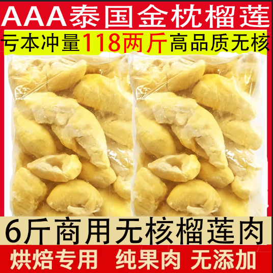 泰国金枕头冷冻榴莲果肉树熟新鲜速冻3kg无核冰冻榴莲肉商用水果