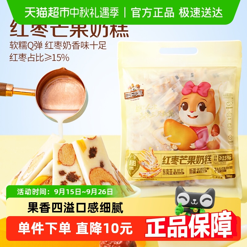 三只松鼠红枣芒果奶糕到手约100根袋装500g枣芒果干网红零食糕点