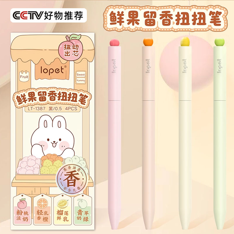 lopet乐派国色茶香扭扭笔新款香味水果大合集ins创意旋转出芯中性笔学生高颜值可爱学生速干ST刷题0.5黑笔