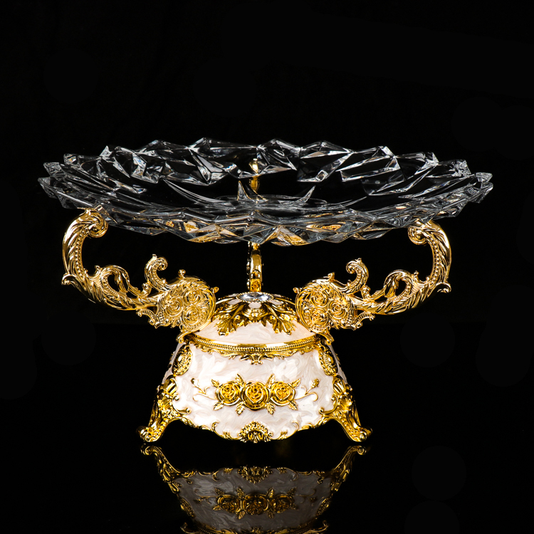 欧式合金家居装饰品干q果盘玻璃双层果盘摆件时尚创意水果盆果篓