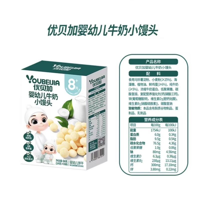 优贝加缤纷水果溶豆婴幼儿冻干溶豆婴标牛奶小馒头口味细腻易吸收