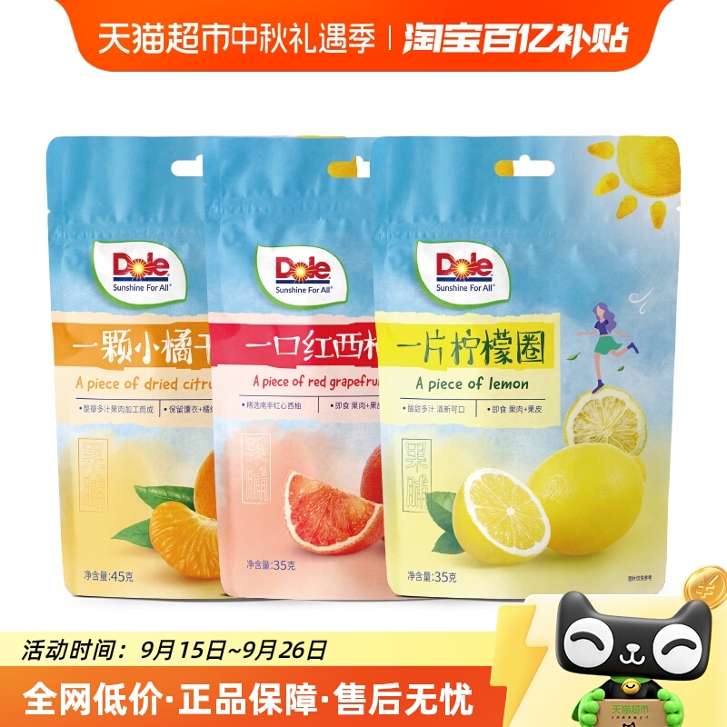 Dole都乐蜜饯果干小橘干红西柚柠檬圈3袋装即食休闲零食解馋泡茶