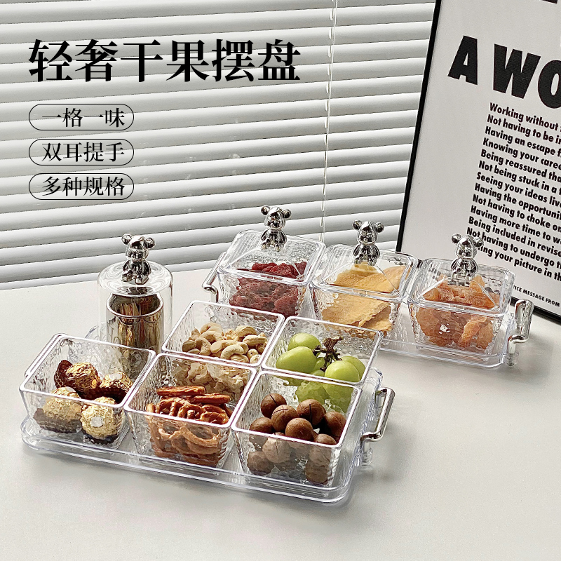 小熊亚克力干果盘客厅家用高级感水果盘零食摆放盘分格小吃碟