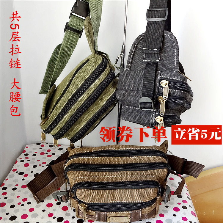 结实帆布大腰包男用女式收款包装零钱包多层口袋围腰间挎包yaobao