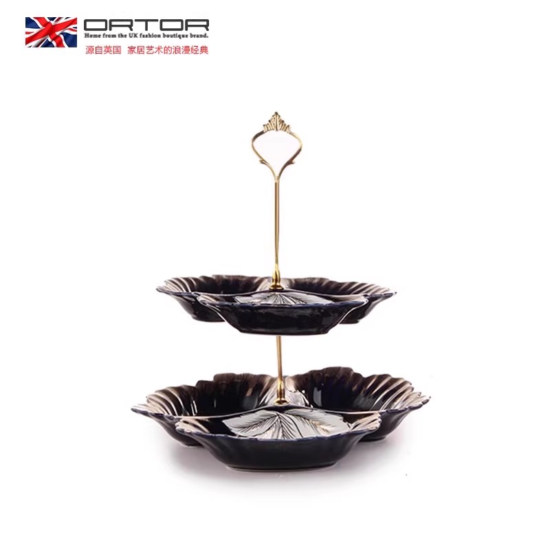 英国ORTOR果盘多层水果盘蓝釉系列串盘水果干果盘欧式蓝釉陶瓷盘