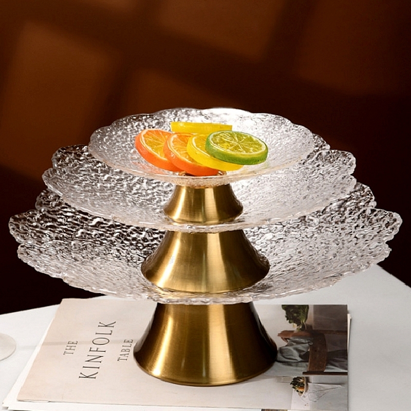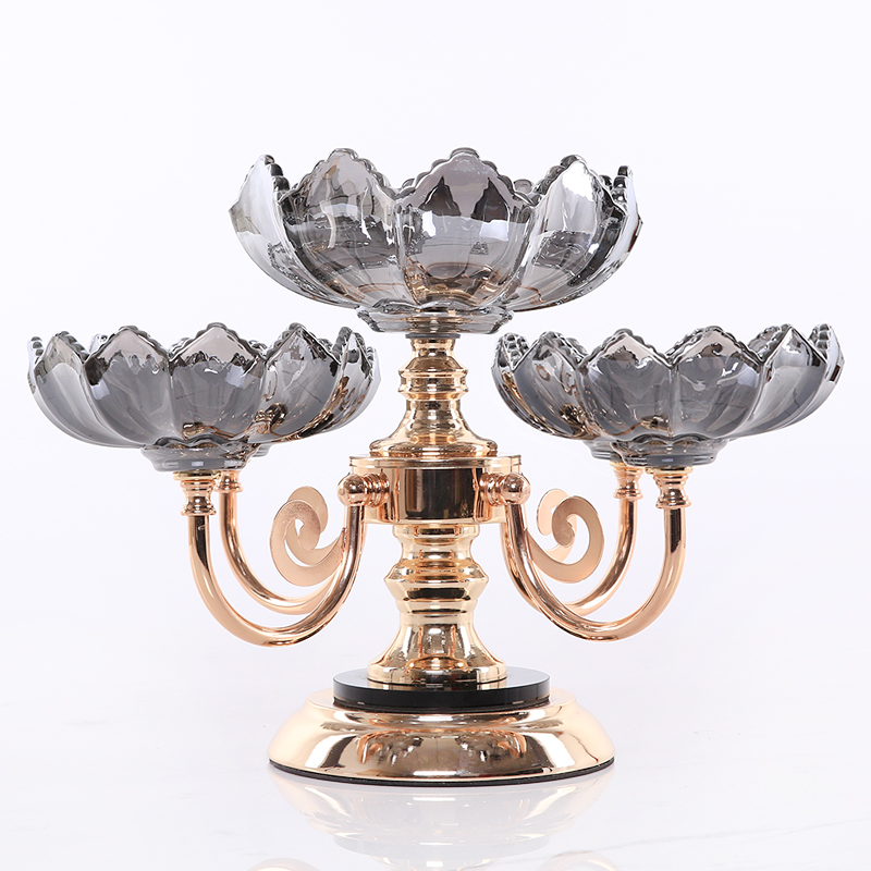 欧式美式金属玻璃干果水果盘样板房家居茶几高级感装饰品餐桌客厅