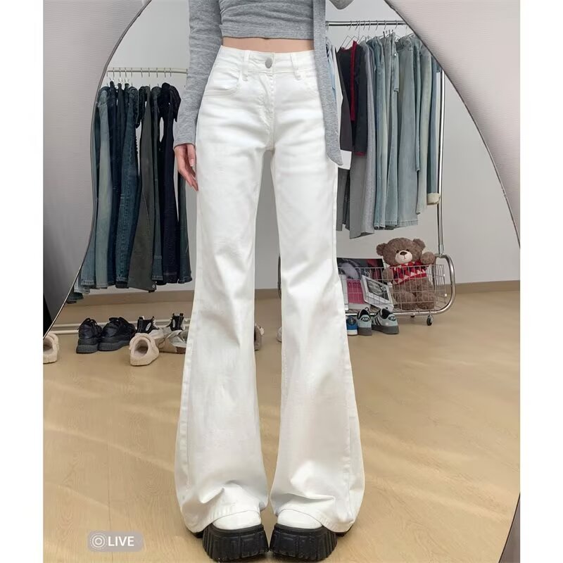 春秋2025新款美式辣妹小个子显瘦马蹄喇叭裤白色低腰微喇牛仔裤女