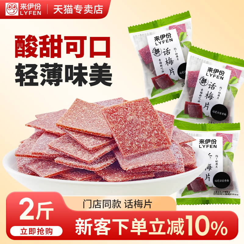 来伊份话梅片500g休闲无核酸梅子蜜饯果干青梅片休闲零食来一份