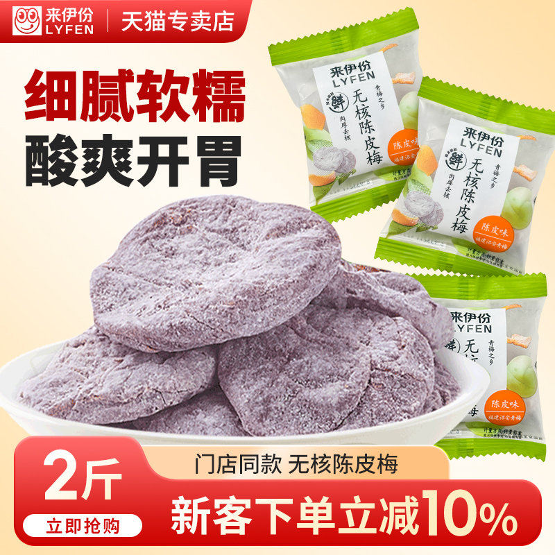来伊份无核陈皮梅蜜饯500g果脯酸甜梅饼青梅果干休闲零食来一份