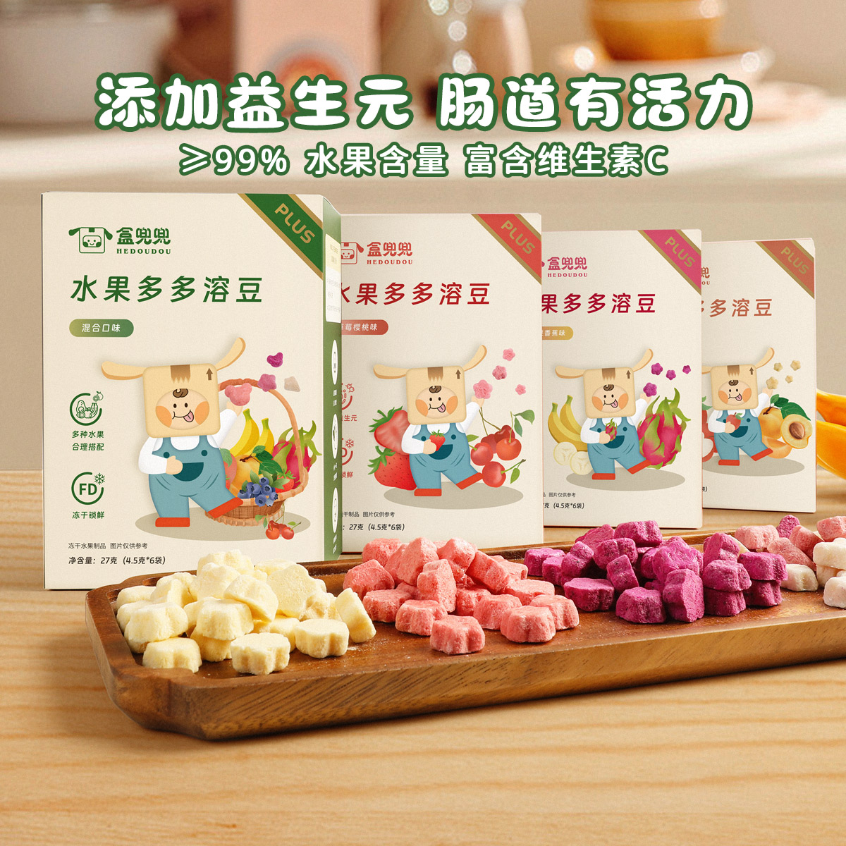 水果蔬菜冻干溶豆无白沙糖添加益生菌宝宝零食婴儿6个月辅食谱
