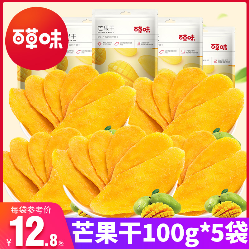 百草味芒果干100gx5袋一斤装芒果片水果干果脯蜜饯休闲零食品小吃