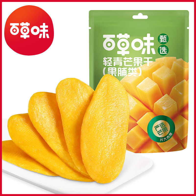 百草味甄选系列轻青芒果干42g100g厚切芒果片原味果脯蜜饯休闲