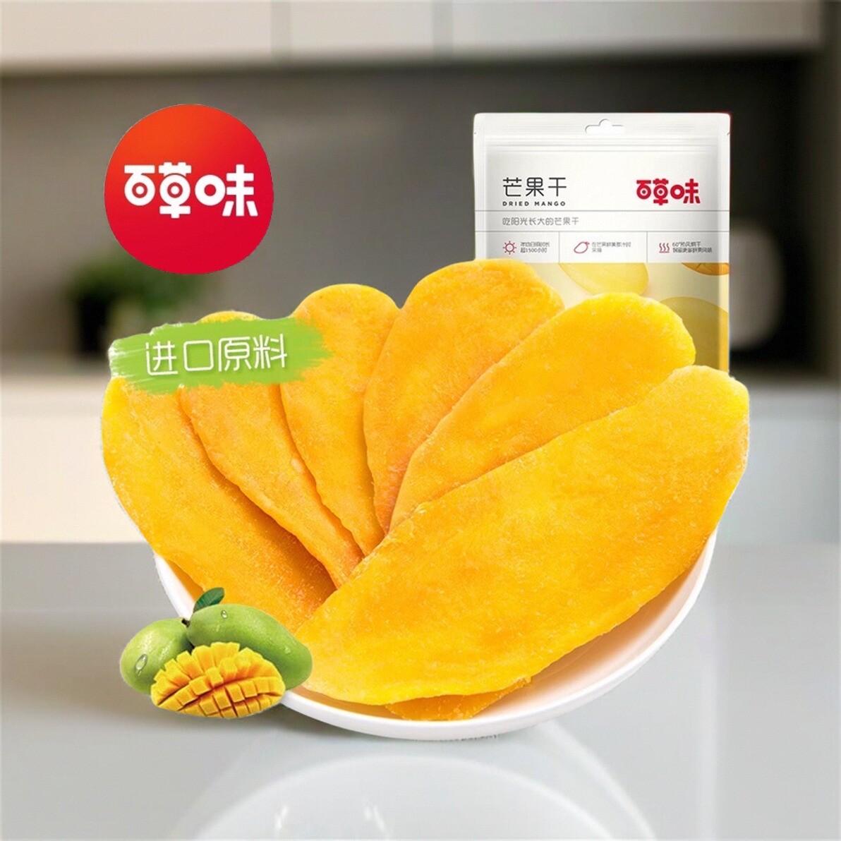 【百草味-芒果干120gx3袋】果脯蜜饯水果干条芒果片 休闲零食包邮