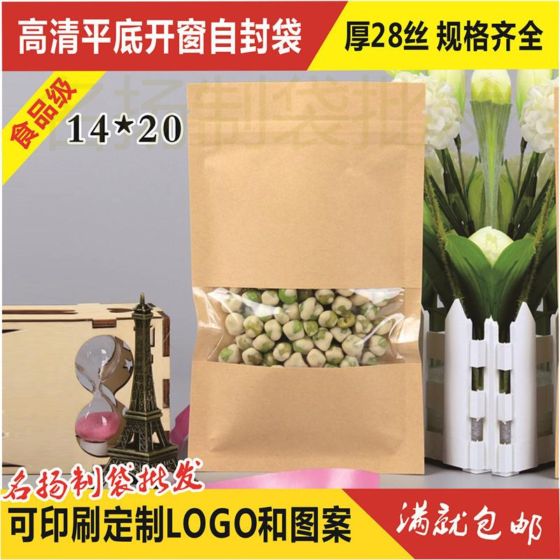 加厚14*20平底开窗牛皮纸自封袋食品包装袋可视零食袋干果密封袋