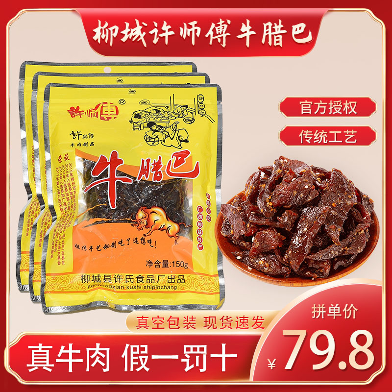 广西柳州特产正宗柳城太平许师傅牛腊巴手撕零添加香辣牛肉干150g