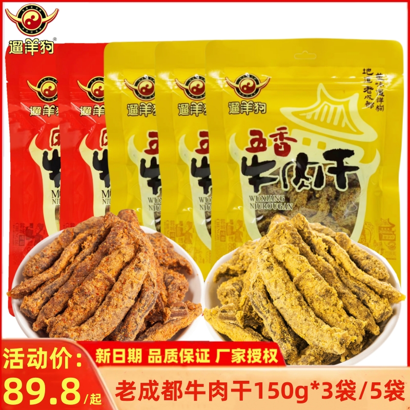 遛洋狗牛肉干150g袋装麻辣五香味牛肉即食休闲零食四川老成都特产