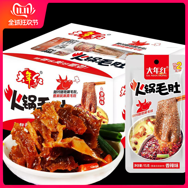 大年红火锅毛肚小零食15g魔芋香辣牛肉牛肚休闲零食食牛百叶熟食