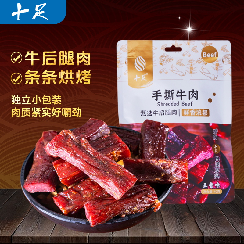 十足即食五香手撕牛肉干条棒熟食袋装休闲解馋零食小吃独立小包装