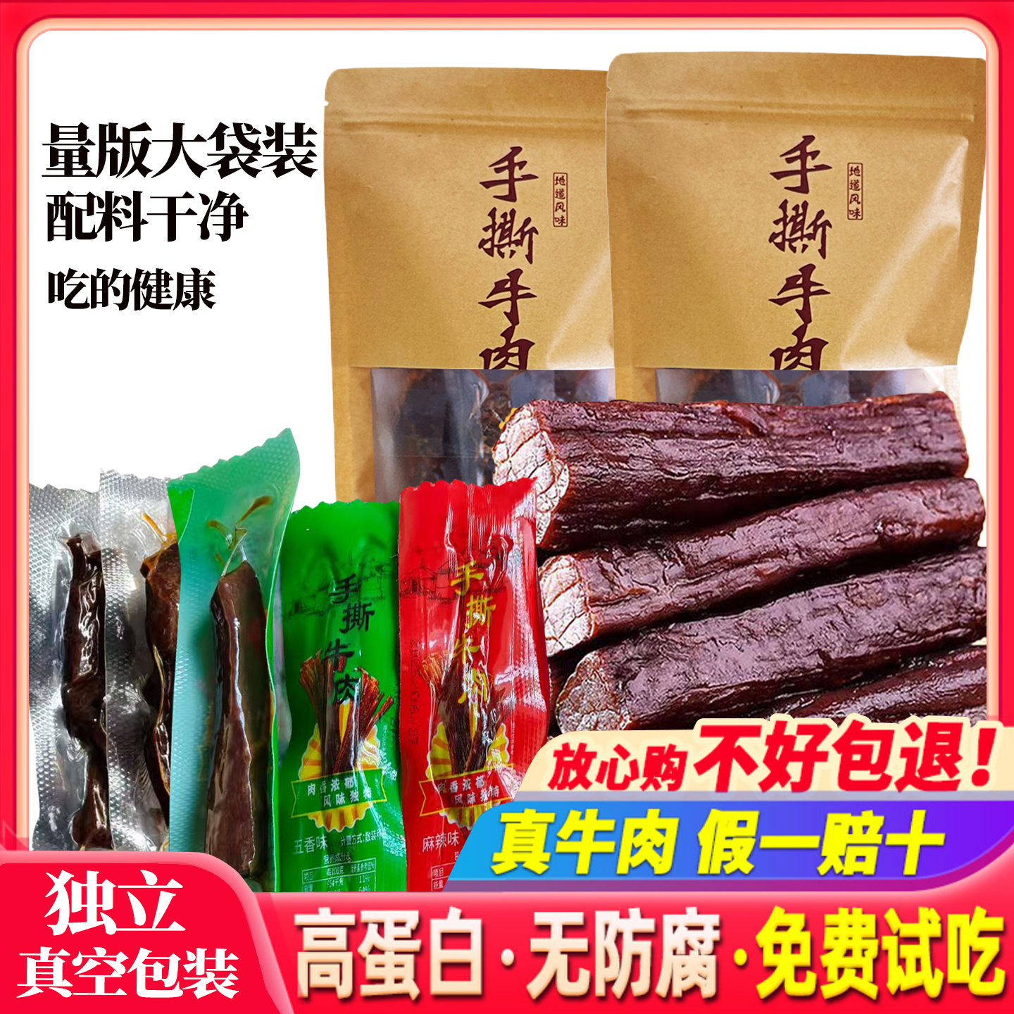 原切手撕牛肉干独立包装即食牛肉麻辣五香新疆内蒙古特产零食500g