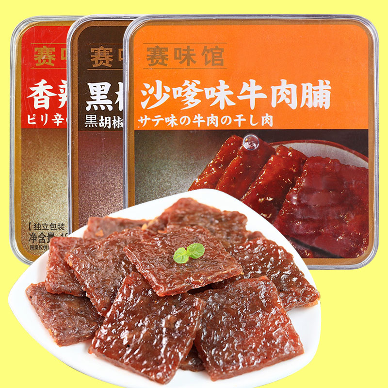 赛味馆牛肉脯120g香辣味黑椒沙嗲肉类零食熟食特产牛肉干独立小包