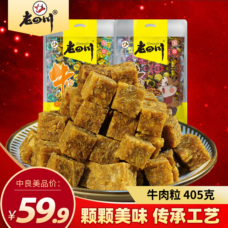 【老四川 五香牛肉粒55g*2袋】金角重庆特产牛肉干麻辣零食小吃