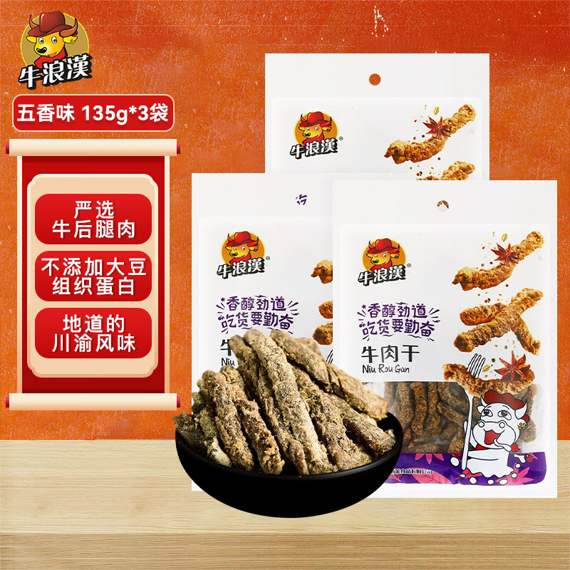 重庆特产牛浪汉牛肉粒135g五香味香辣牛肉粒休闲零食