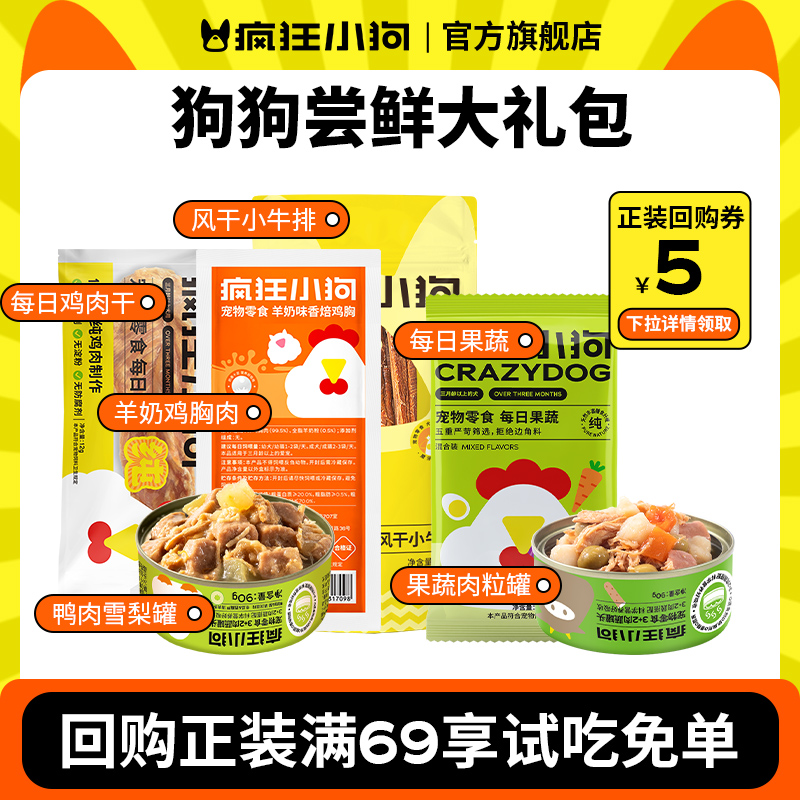 【尝鲜礼包】疯狂小狗狗零食肉干罐头磨牙棒幼犬小型犬拌饭大礼包
