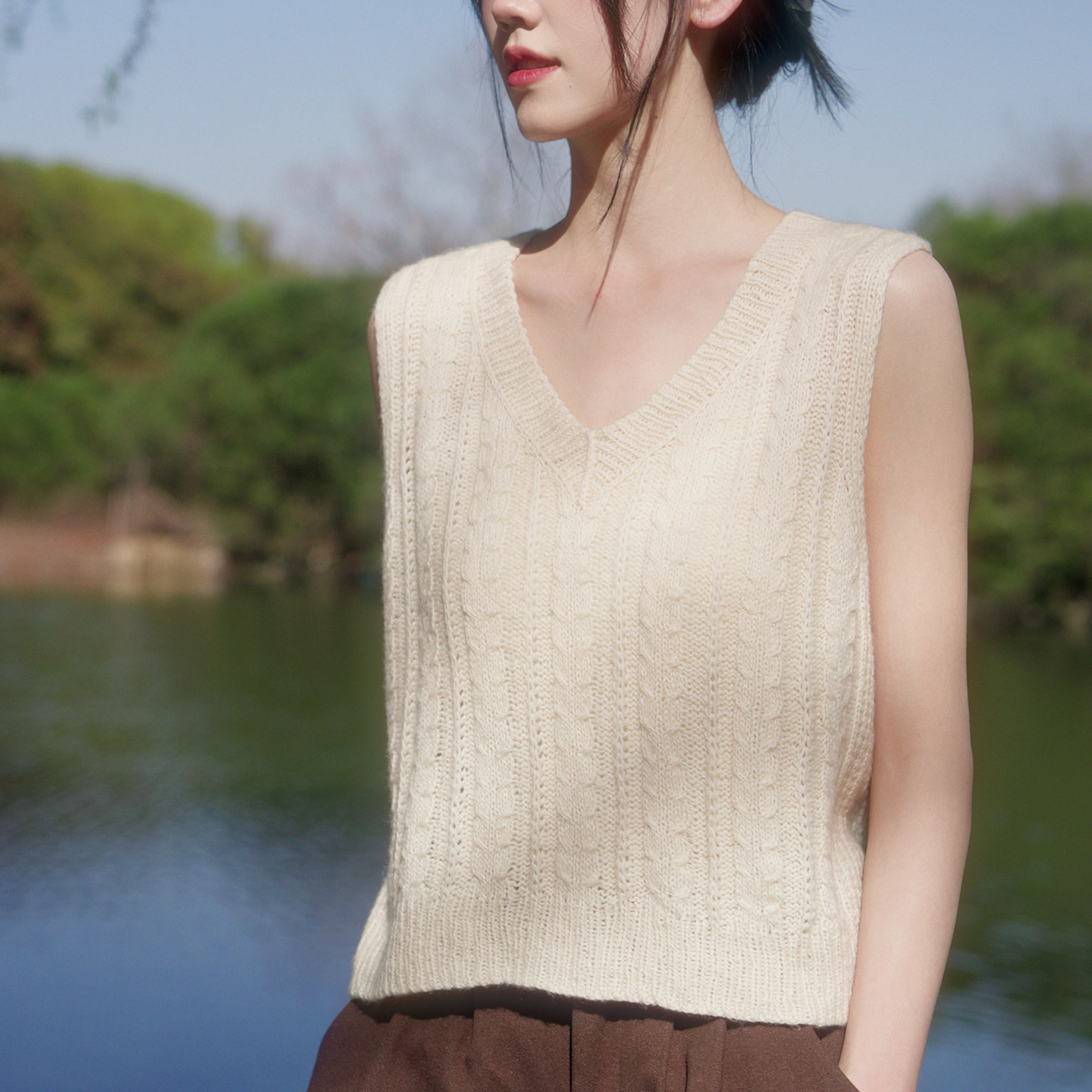 编织人生362雾羽 牦牛绒绞花背心材料包 手工DIY毛线棒针秋新品