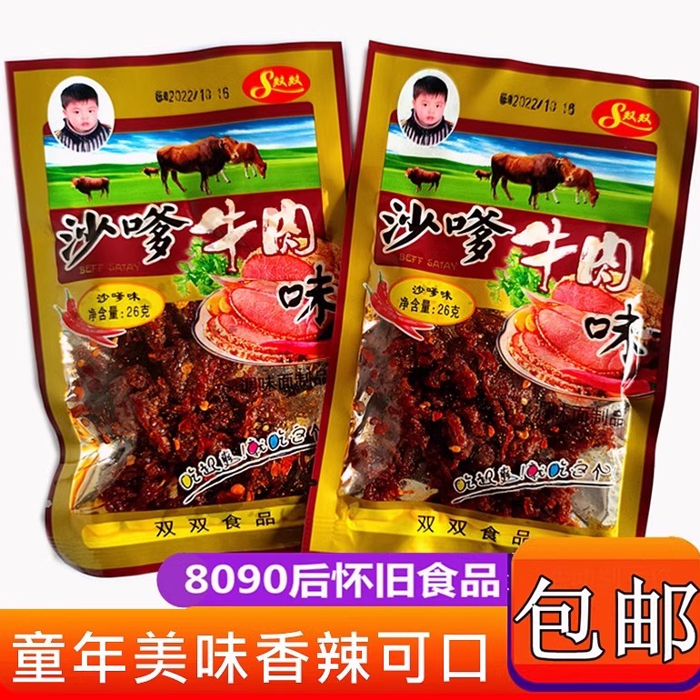四川特产怀旧休闲小零食沙爹沙嗲牛肉味辣条干颗粒面筋麻辣片包邮