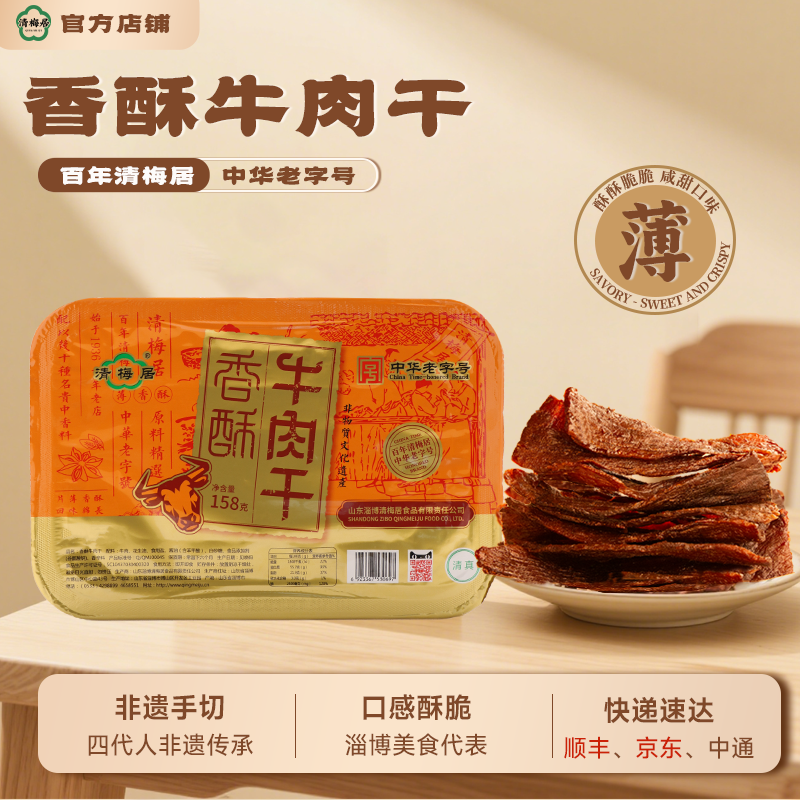 清梅居香酥牛肉干158g盒淄博特产咸甜酥脆零食清真薄脆休闲小零食