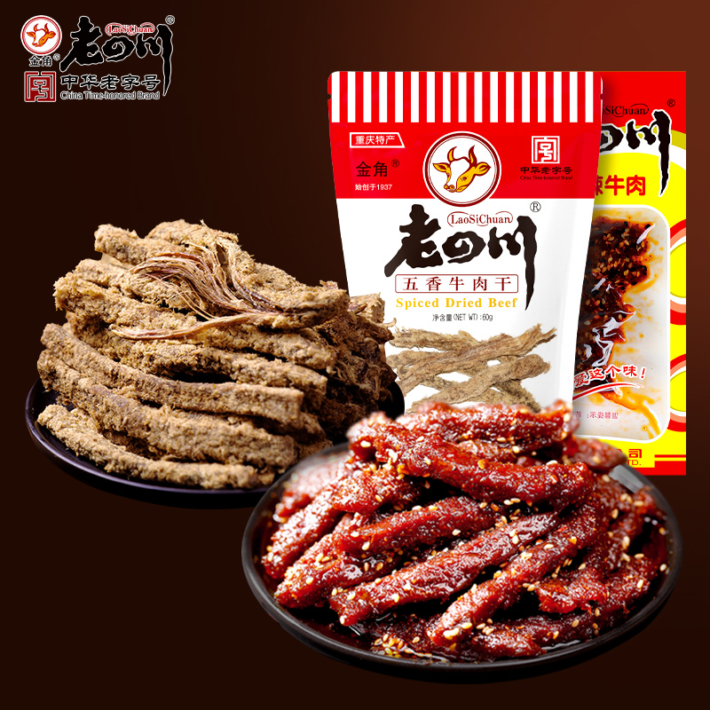 【老四川 五香麻辣牛肉干60gx5袋】重庆特产牛肉干麻辣零食小吃